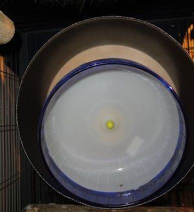 This picture is a 15" chin spin behind a 12" silent spinner. I would never recommend using a plastic wheel as they will get chewed and are way too small.